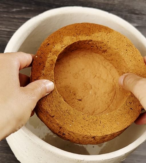 - Place the pad at the bottom of the pot, add some soil, and position your plant.